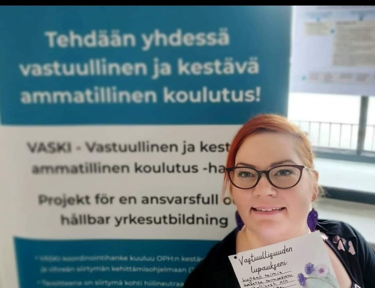 asiasanat: Virve Rinnola, VASKI-hanke, vastuullinen, kestävä kehitys, ammatillinen koulutus, johtaminen, koulutuspäällikkö, kehittäminen